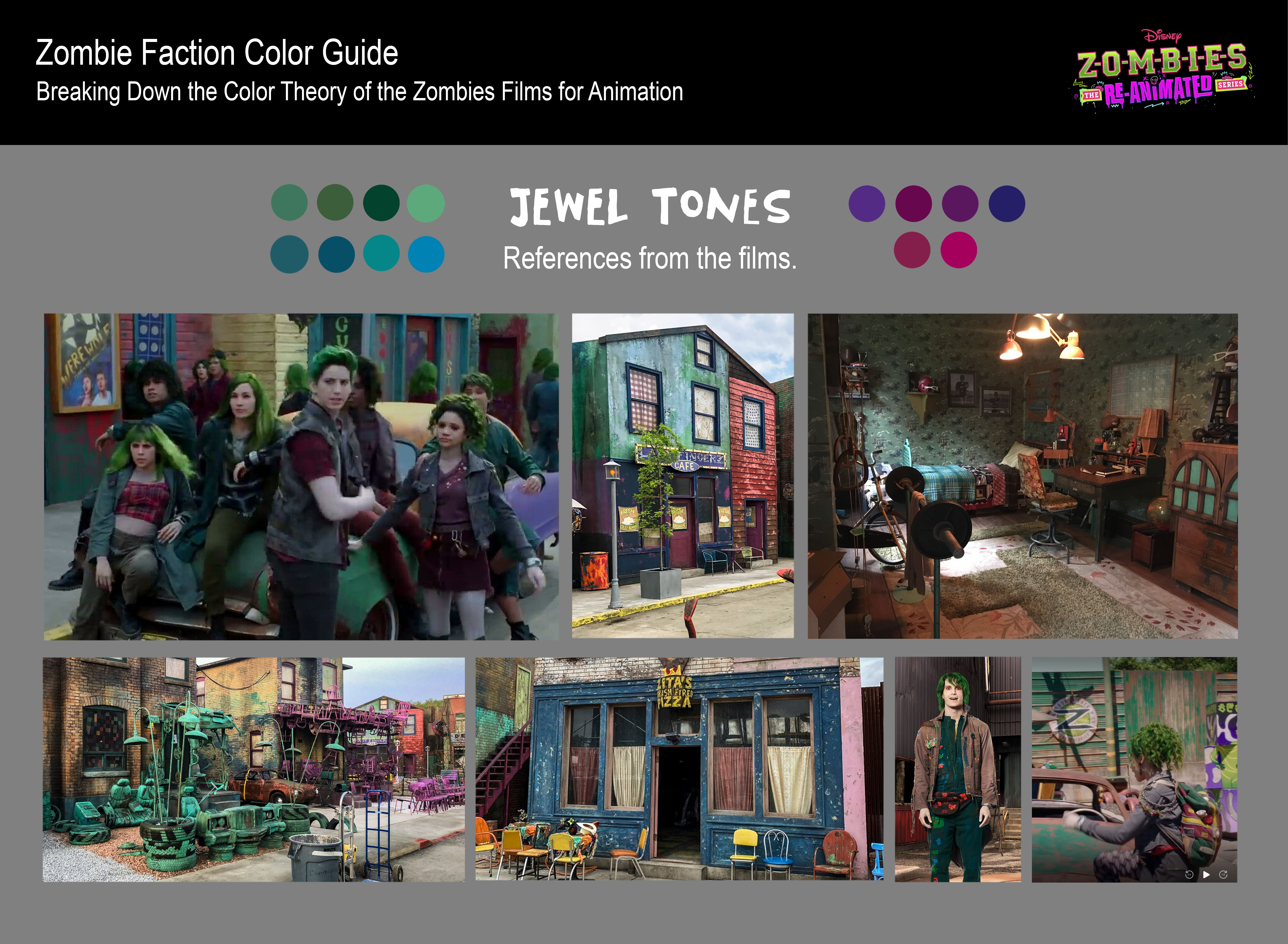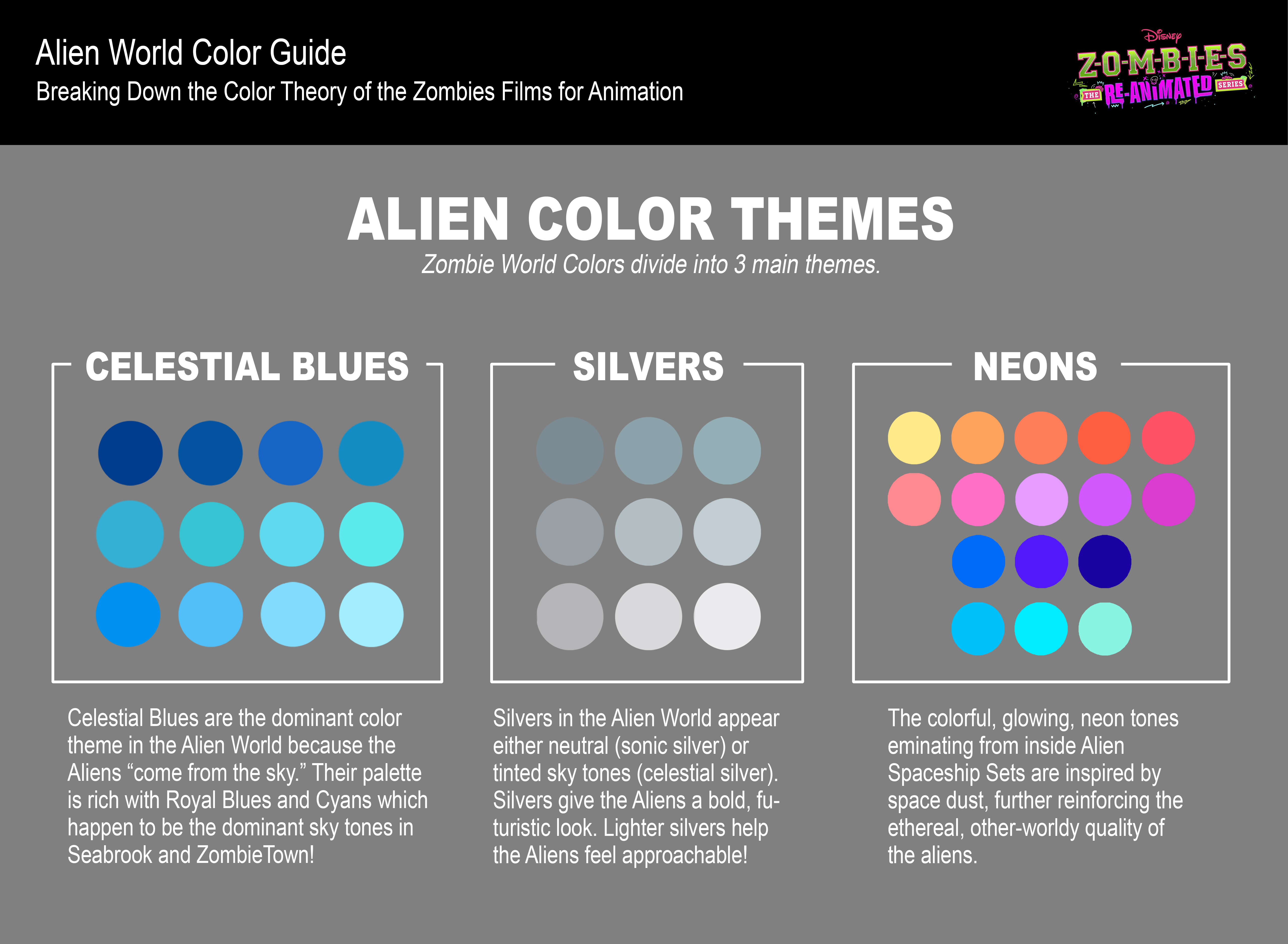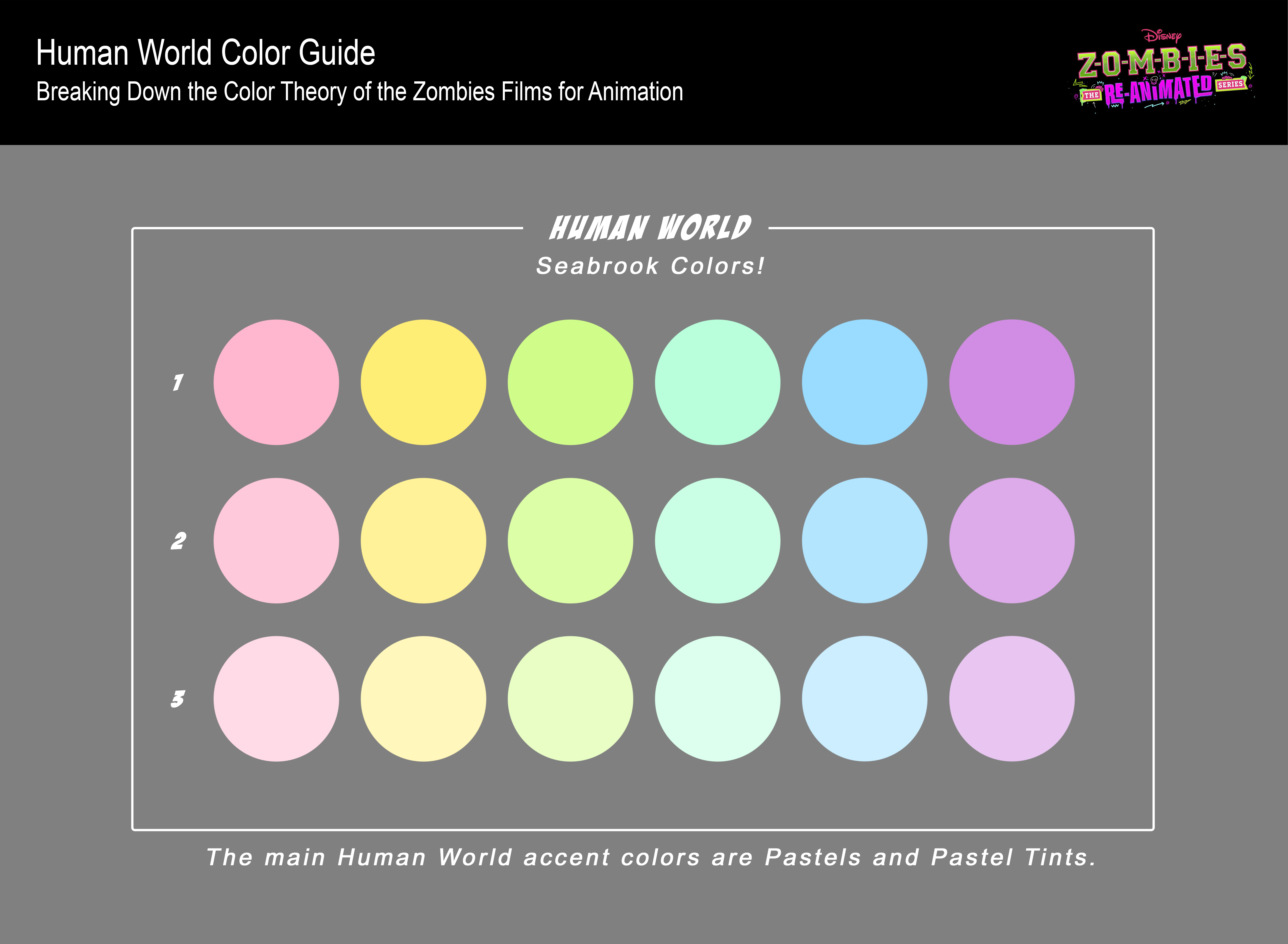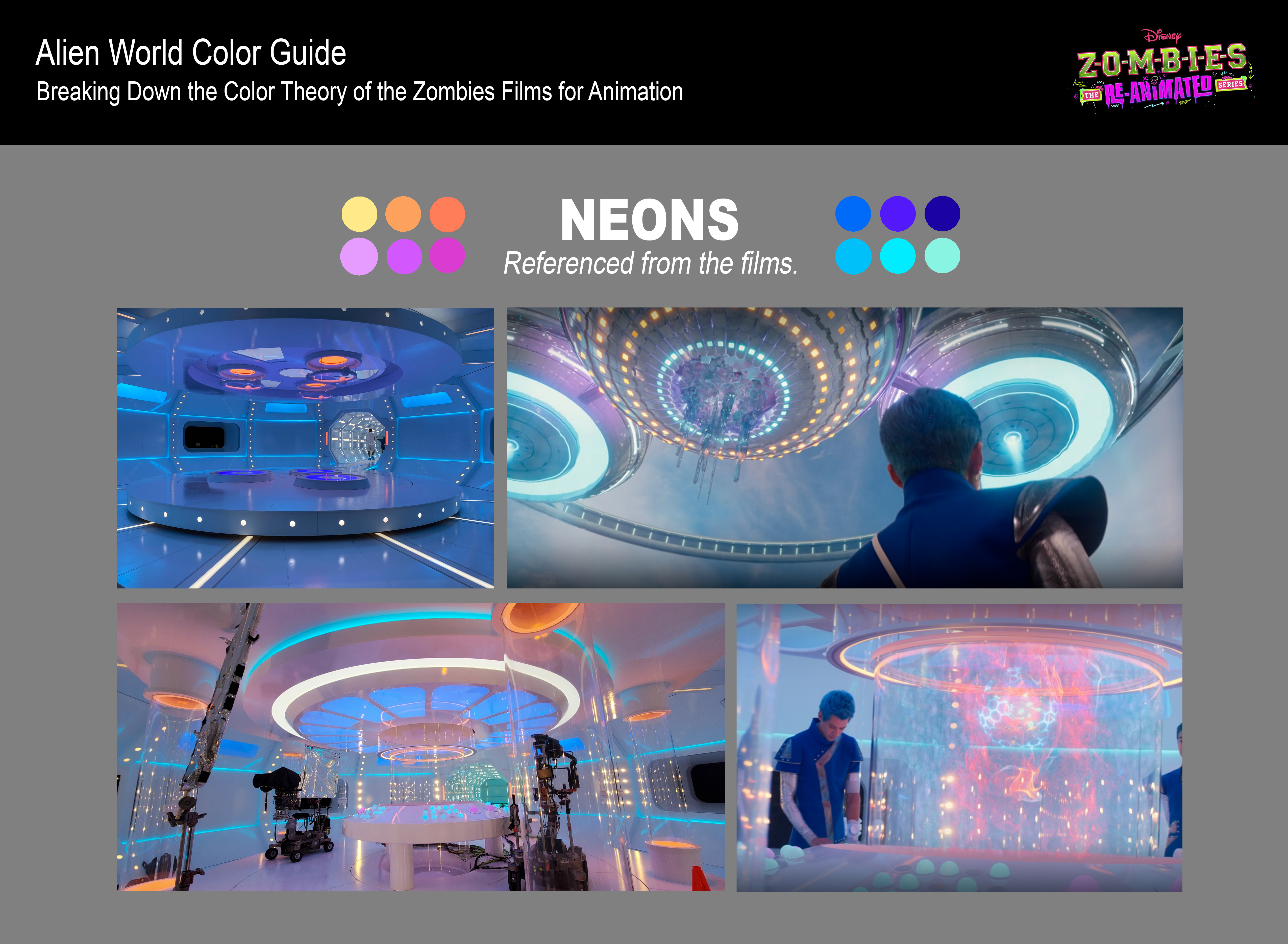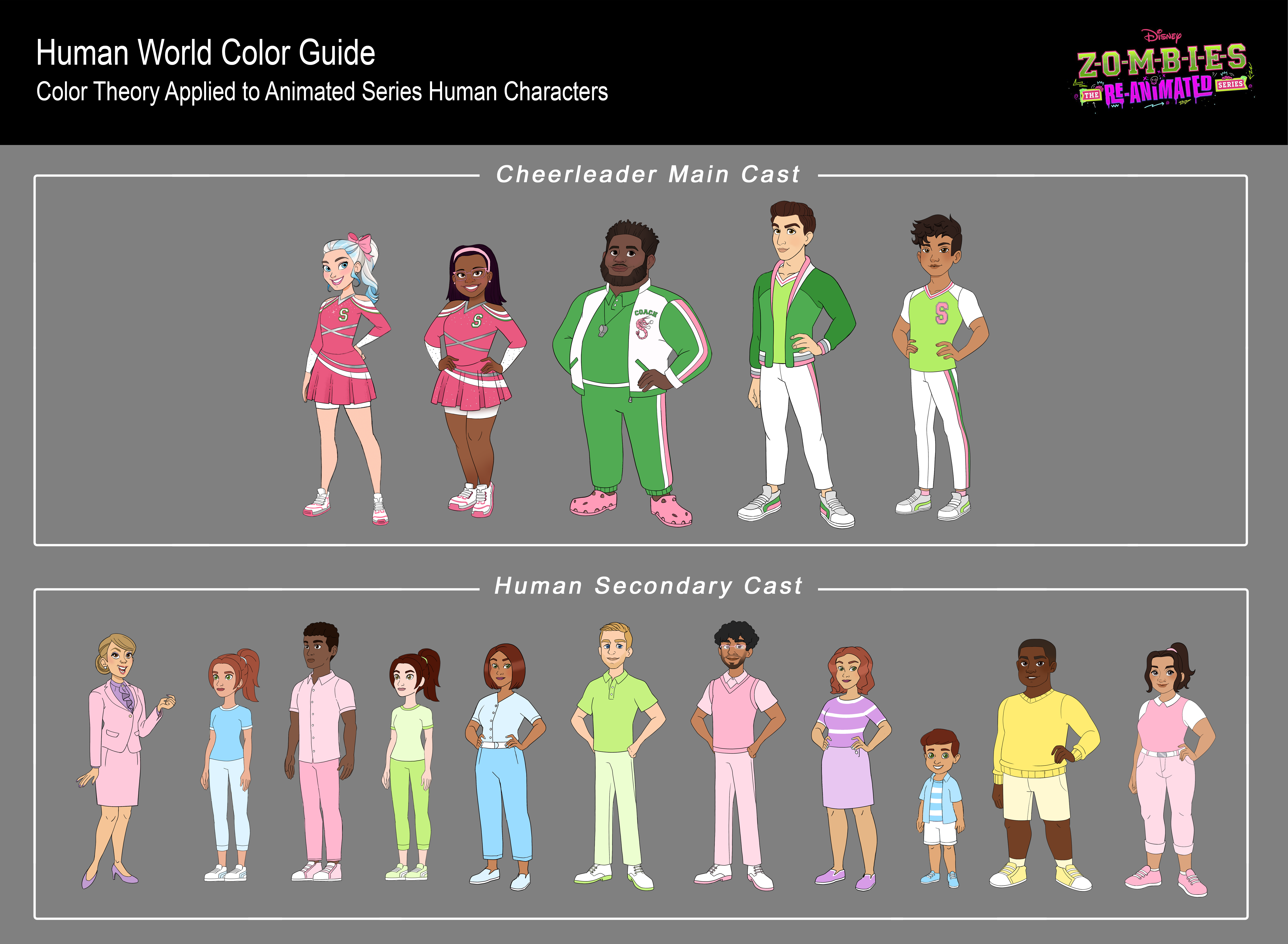 As we expanded the world of Zombies, it became clear we needed a unified color theory and design system to ensure each "faction" – Humans, Zombies, Werewolves, Aliens, and Witches – had distinct, instantly recognizable visual identities. I reverse-engineered the live action films’ color logic and created a series of color guides for our partner studio, removing as much guesswork as possible and helping streamline the design process.