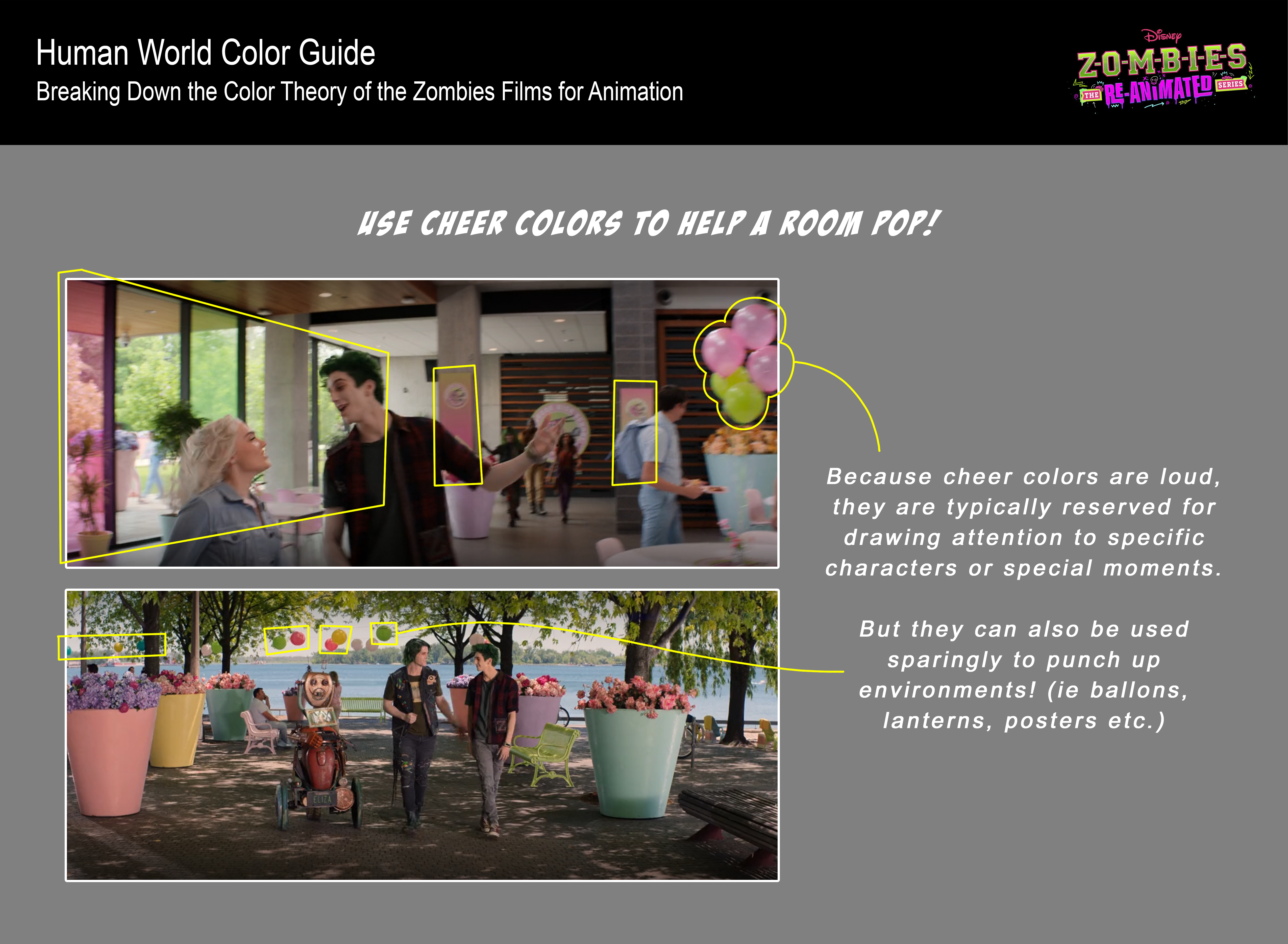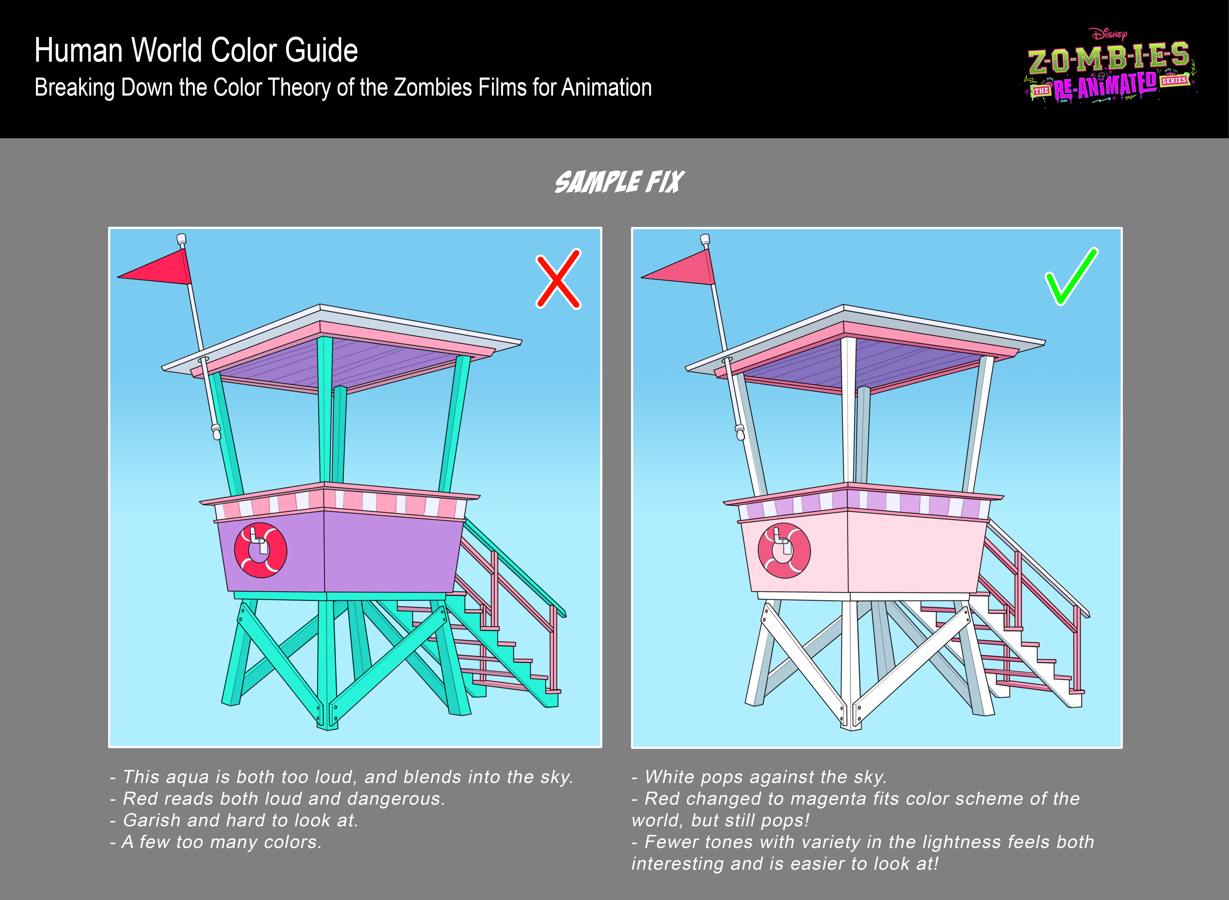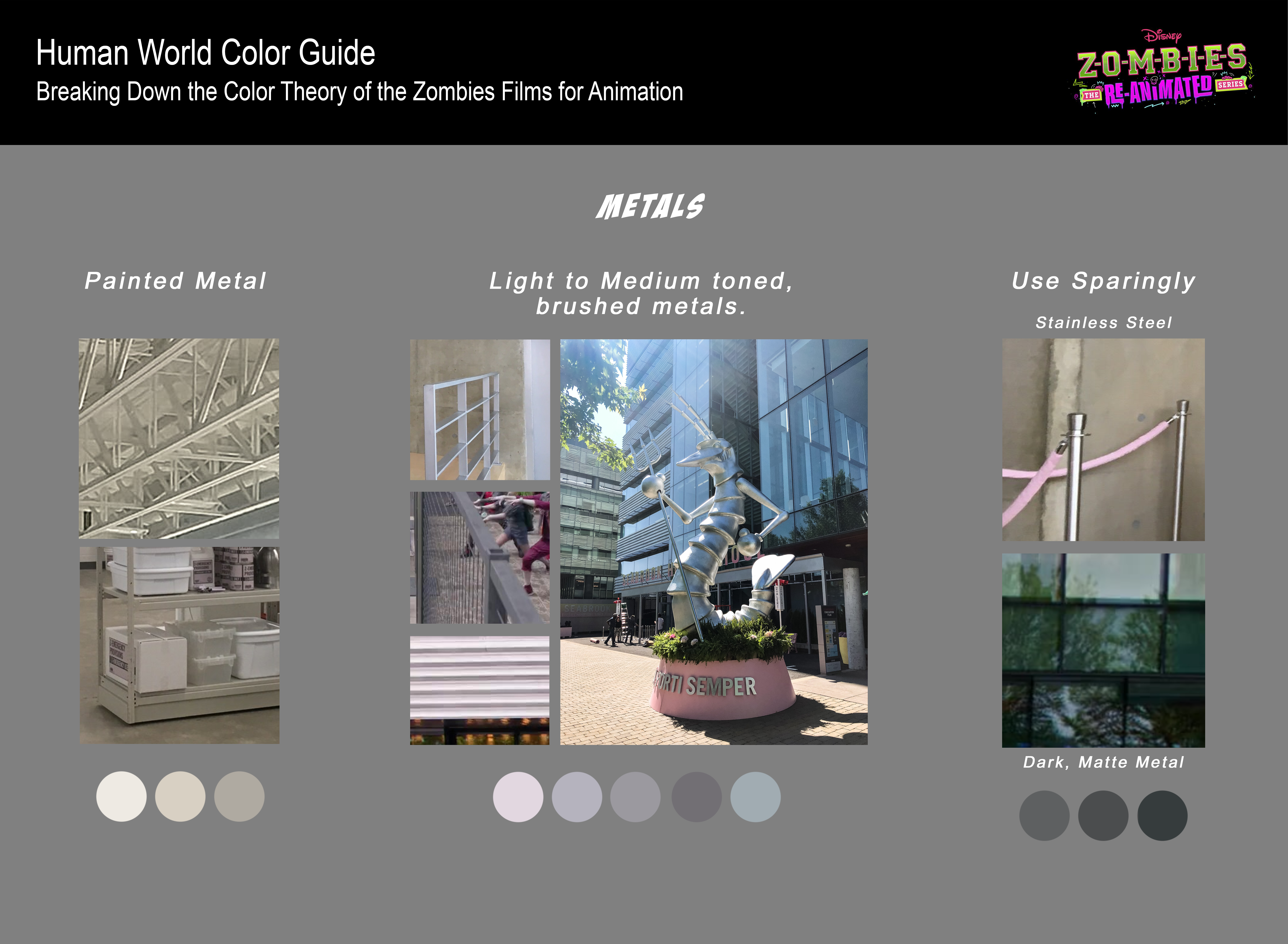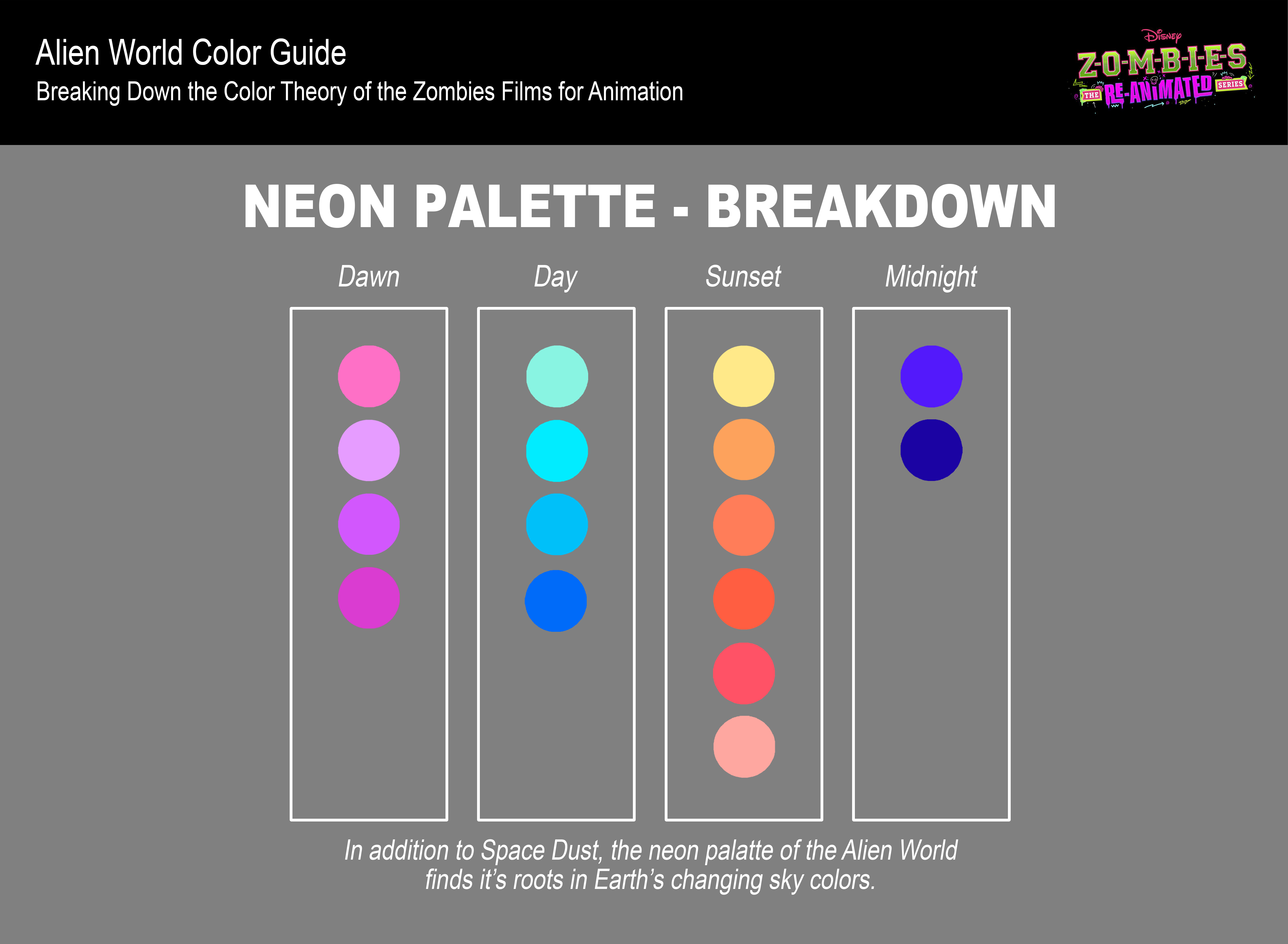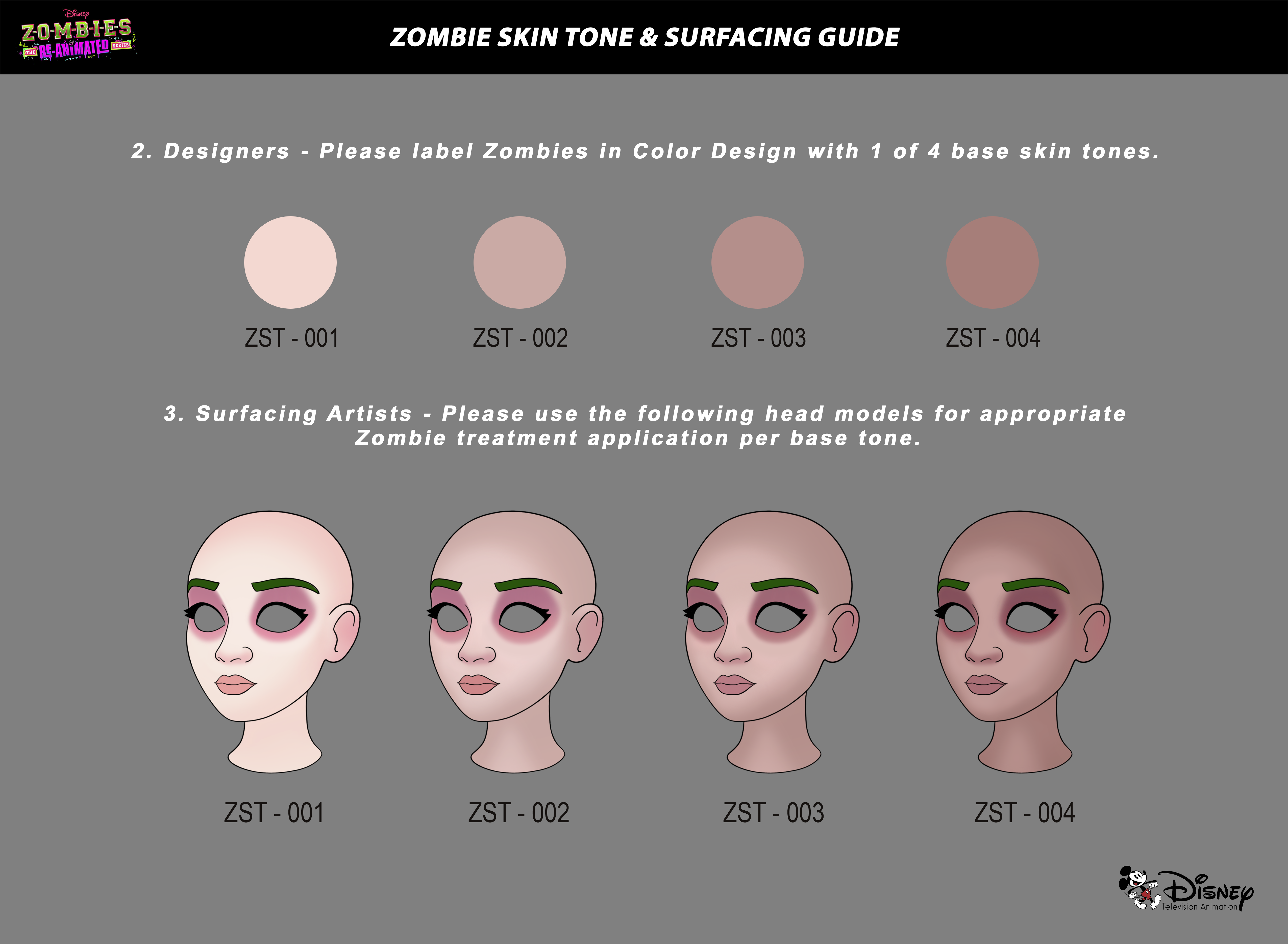 As we expanded the world of Zombies, it became clear we needed a unified color theory and design system to ensure each "faction" – Humans, Zombies, Werewolves, Aliens, and Witches – had distinct, instantly recognizable visual identities. I reverse-engineered the live action films’ color logic and created a series of color guides for our partner studio, removing as much guesswork as possible and helping streamline the design process.