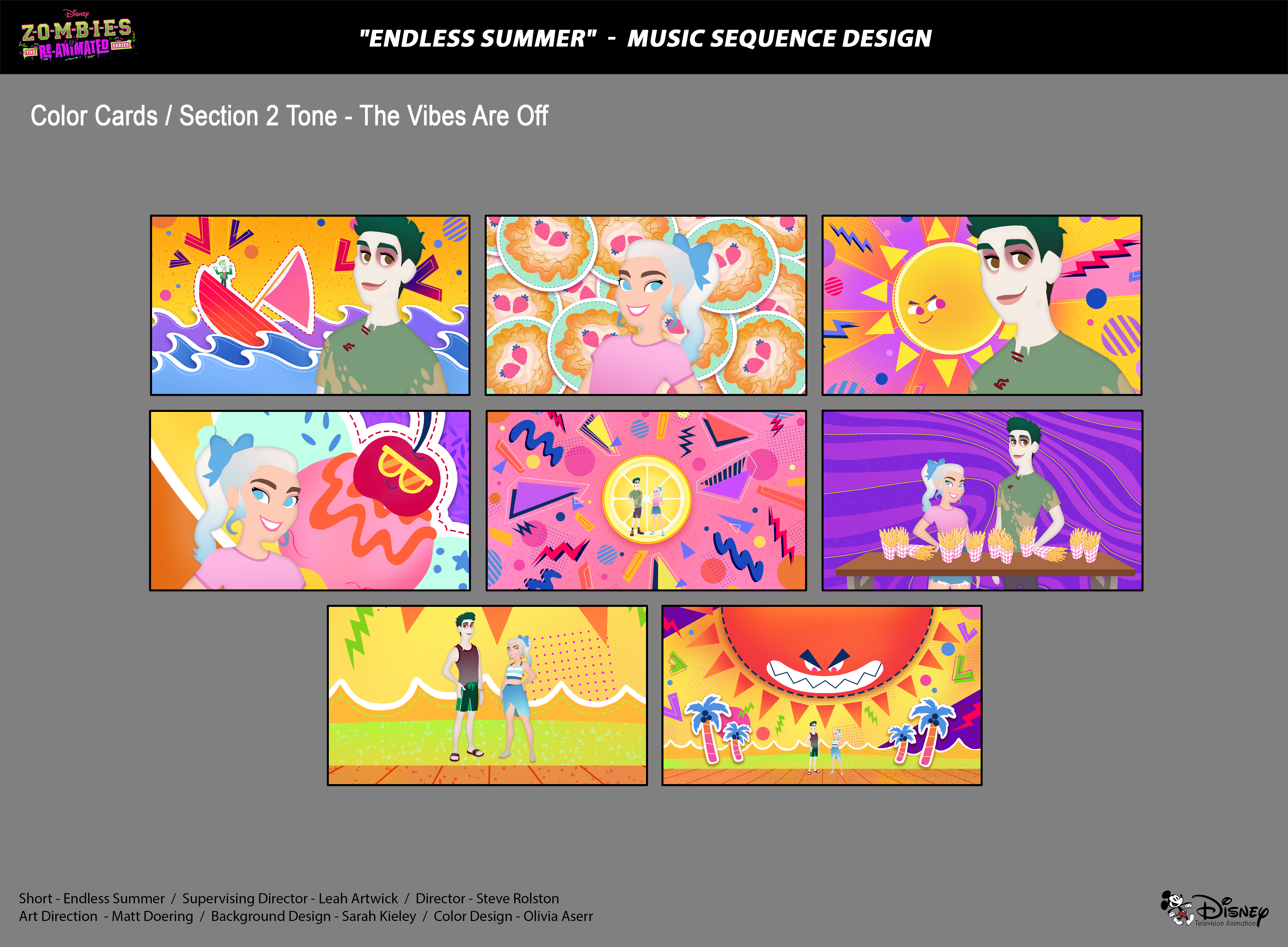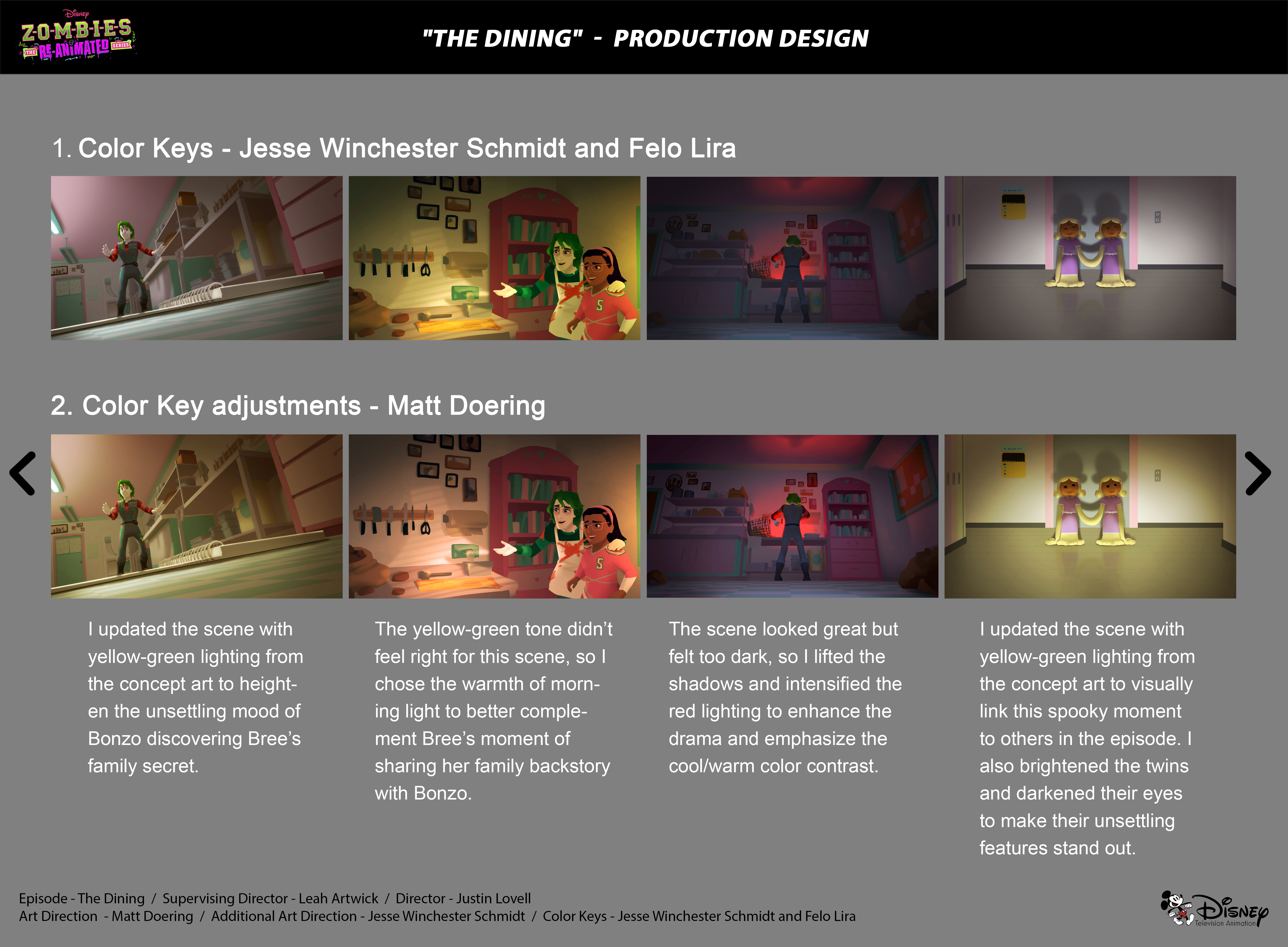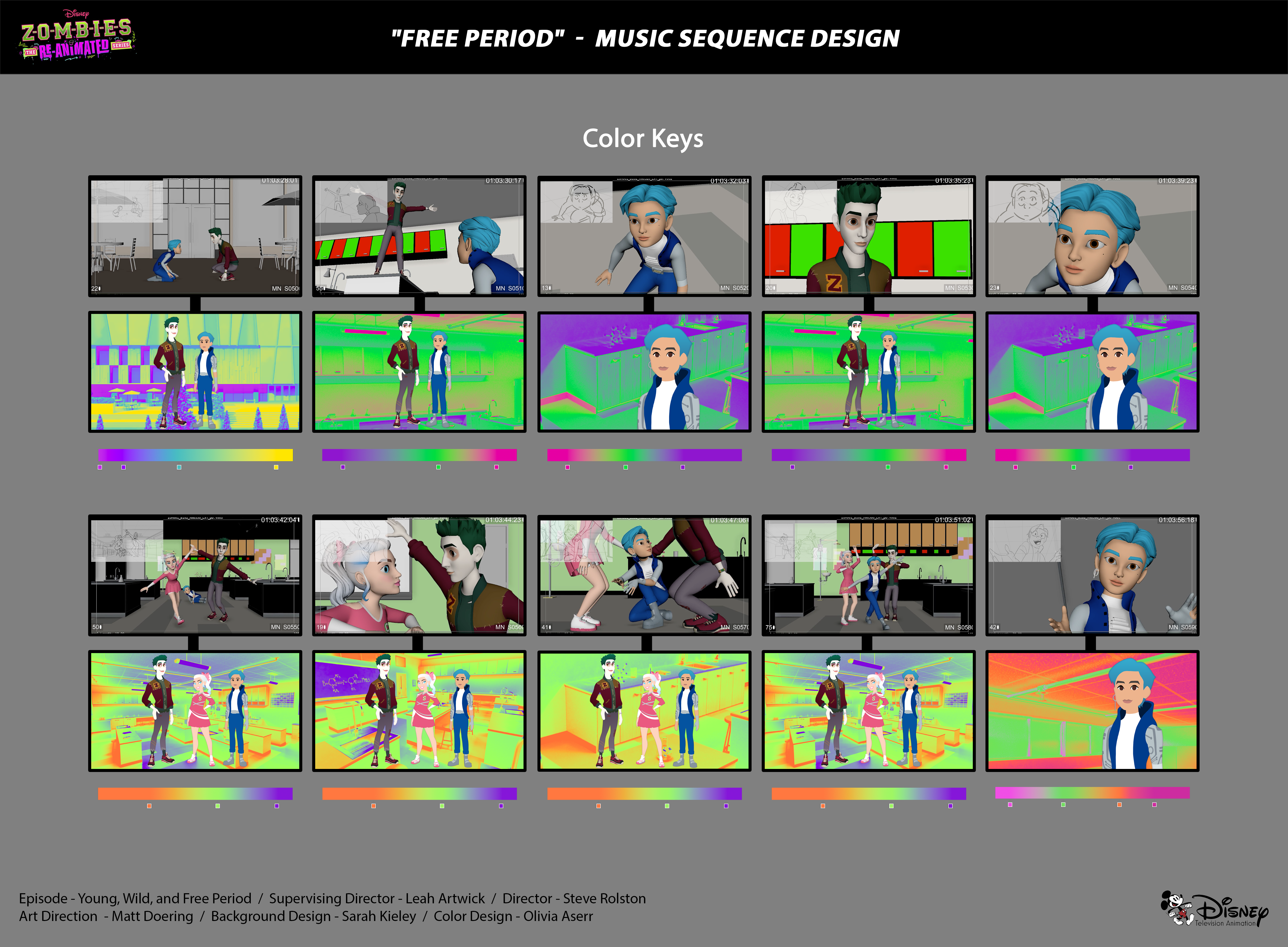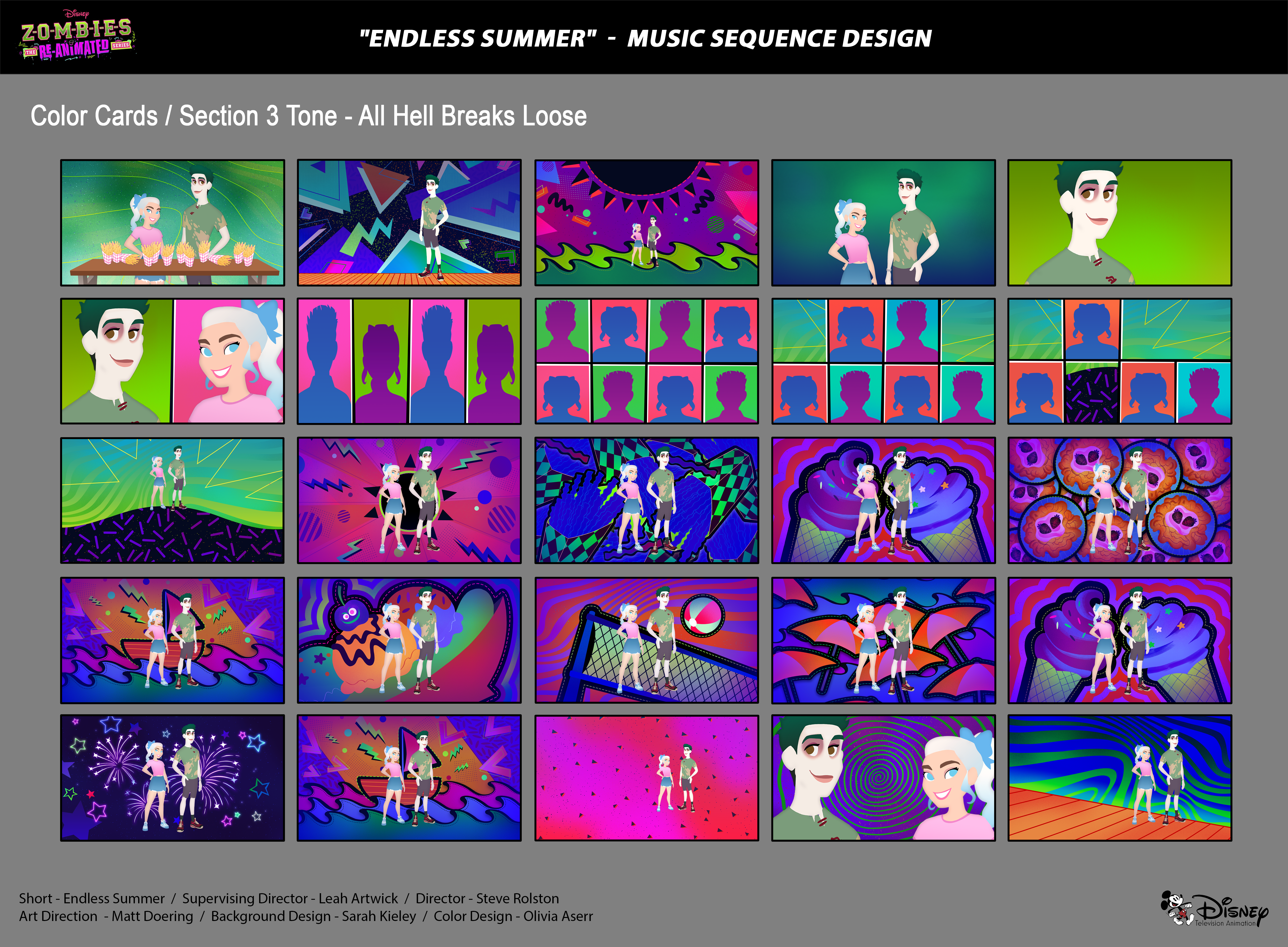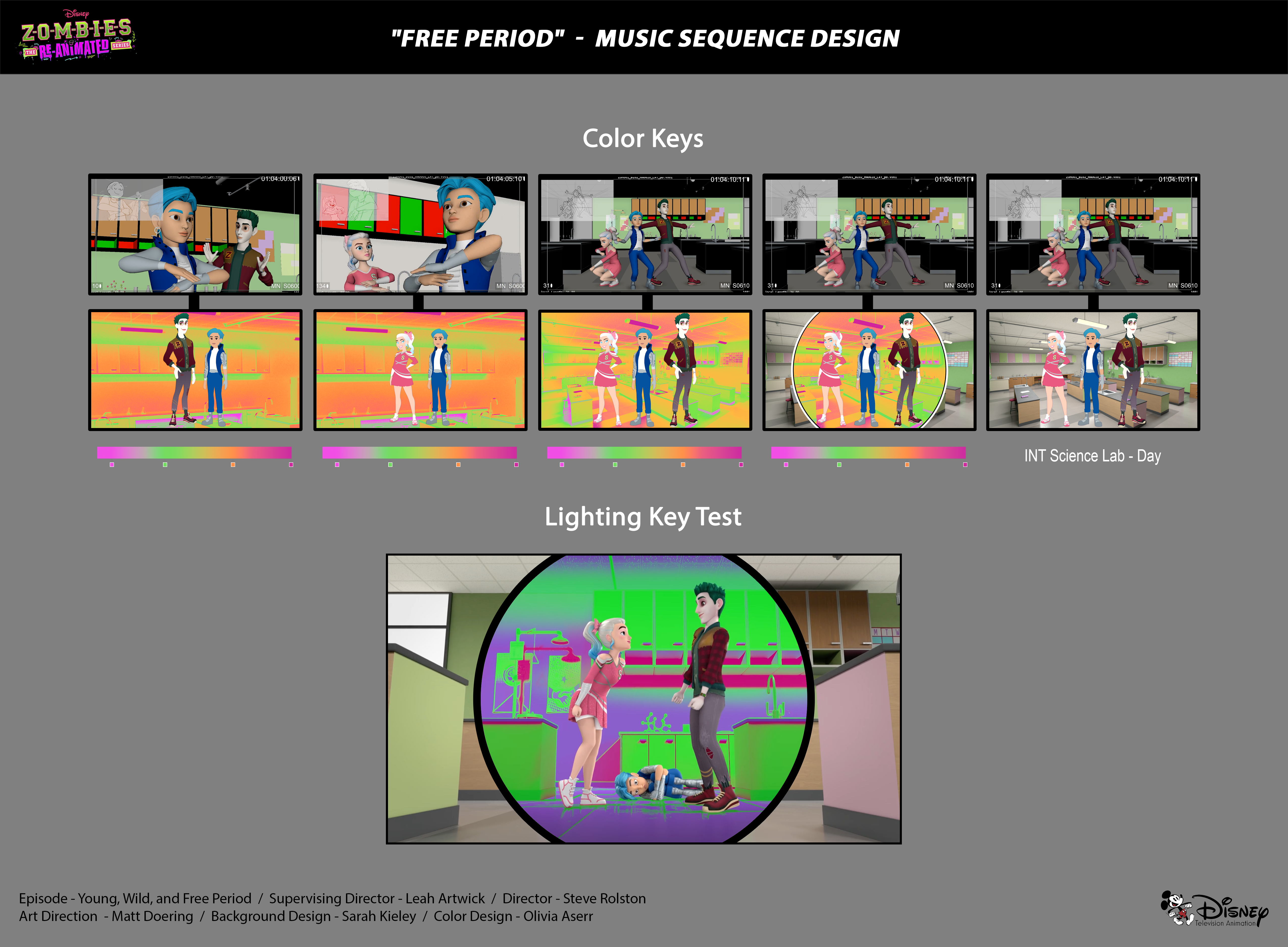 As we expanded the world of Zombies, it became clear we needed a unified color theory and design system to ensure each "faction" – Humans, Zombies, Werewolves, Aliens, and Witches – had distinct, instantly recognizable visual identities. I reverse-engineered the live action films’ color logic and created a series of color guides for our partner studio, removing as much guesswork as possible and helping streamline the design process.